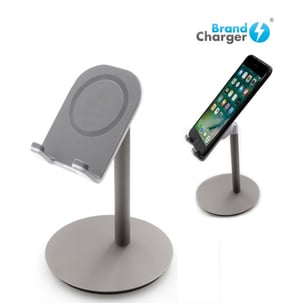 Base para tablet o celular compatibles con todos los modelos, cuenta con almohadilla de agarre de goma y ángulo de visión óptica.